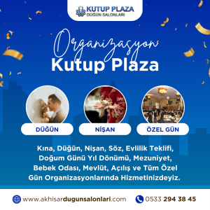 Kutup Plaza Düğün Salonları, Akhisar’da doğum günü organizasyonları için ideal bir mekan sunmaktadır. Profesyonel hizmet anlayışımız, şık ve modern salonlarımız, lezzetli menü seçeneklerimiz ve kapsamlı organizasyon hizmetlerimiz ile hayallerinizdeki doğum gününü gerçeğe dönüştürmek için buradayız. Doğum gününüzde her şeyin kusursuz olması için yanınızda olan Kutup Plaza Düğün Salonları, unutulmaz anılar biriktirmenizi sağlar. Hayatınızın en özel gününde, sevdiklerinizle birlikte kusursuz bir kutlama yapmak için doğru adresi seçin.